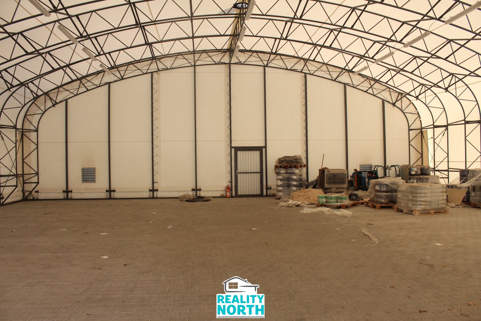 - Hala velká textilní s ocelovou konstrukcí o rozměrech 30 m x 36 m (1080 m²), výška bočních stěn 3,5 m, vrcholová výška 10,4 m s 2 x integrovanými sekčními vraty o rozměrech 4 m x 4,5 m